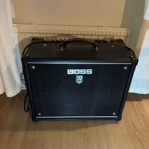 Förstärkaren: En Boss Katana MKII 50W. En väldigt mångsidig combo förstärkare med relativt bra kräm i sig. Det är sällan man kör på 50w hemma! Pris: 2500 kr