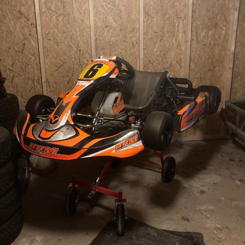 Gokart. Kan inget om denna..en kille lagrade denna här..får nu ej tag i honom, tröttnat, säljer den. Inget luft i däck. Ej körd på 10 år. Motor går runt fint. Honda 6.5hk