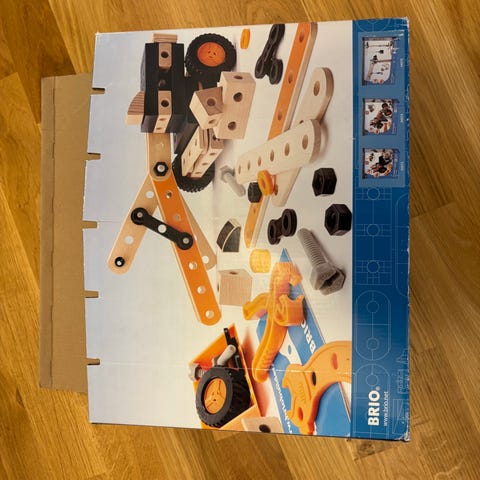 BRIO Builder System byggsats med 70 delar. Innehåller olika byggdelar i trä och plast, skruvar, muttrar och verktyg för att kunna skruva ihop enkla modeller som till exempel fordon och figurer. Rekommenderad ålder från 3 år. Passar som konstruktionsleksak för barn som gillar att bygga och montera.