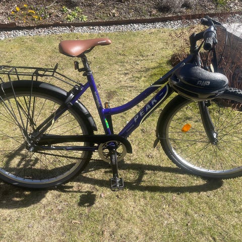 Cykeln är 3-växlad och har både fotbroms bak och handbroms fram. Den är stabil och bekväm att cykla på.