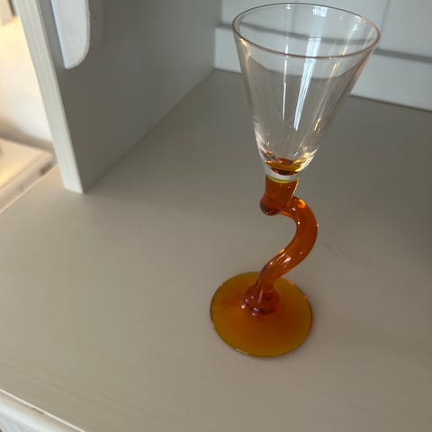 6 stycken fina snapsglas med fot i metall utformad som ett vikingahuvud.