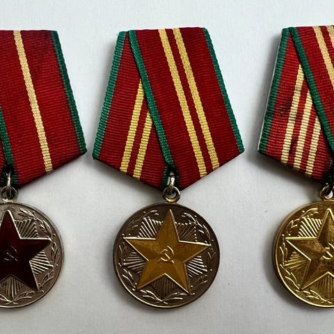 SLK medaljer och nålar med blå/silver band. Setet omfattar en större medalj med texten "För förtjänster om Sveriges lottarorganisation" ( Sveriges Lottakårer Riksförbundet ) och blå/silver ordensband, samt flera mindre nålar och ett rektangulärt band i samma färger. 2 st stämplad silver och kattfot samt K9=1960 års, samt 3 st i Metall och guldfärg med nålfästen på baksidan. Lämpliga som samlarobjekt eller för uniformsbruk inom SLK eller relaterad lottarorganisation. Tillverkare Sporrong & co, Stockholm. sökord: retro, vintage, nostalgi, SLK, lottakåren, lottakårer, samlarobjekt, pins, medaljer, förtjänstmärken, utmärkelser, försvaret, kan skickas