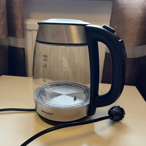 Philips vattenkokare i svart utförande. Elektrisk vattenkokare med nivåfönster på sidan för enkel avläsning av vattenmängd. Utrustad med handtag och lock upptill samt strömbas med sladd. Passar för uppkokning av vatten till exempelvis te, kaffe och matlagning i hemmet eller på kontoret.