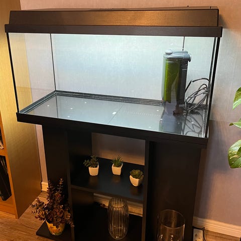 Akvariet kommer med original lock och belysning. Passar perfekt för både nybörjare och erfarna akvarieägare. Normala bruksspår finns.
