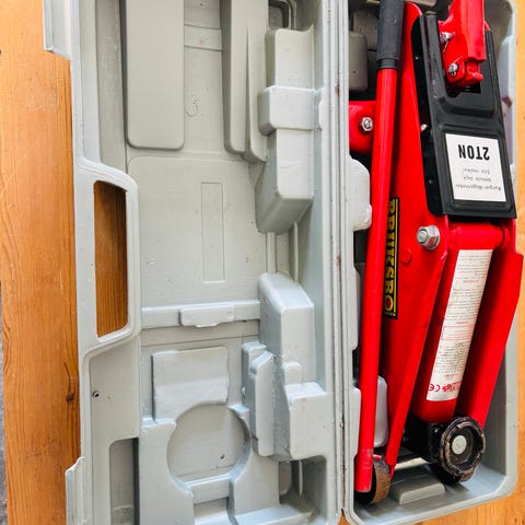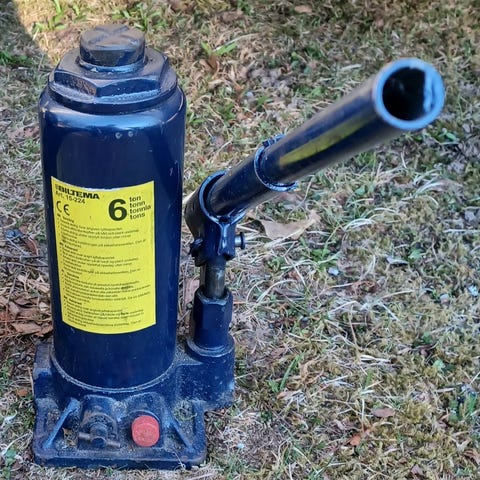 Domkraft 2,5 ton. Funkar men lyfter inte till maxhöjd. Troligen olja som behöver fyllas på? Finns i Hässleholm