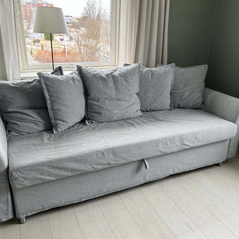 Bäddsoffa säljes i fint skick. Inköpt på Trademax för ca 3år sedan. Har stått i våran sommarstuga, så sparsamt använd. Katt finns.