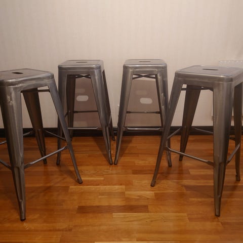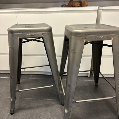 Säljer tre klassiska Tolix pallar, höjd 65 cm. Perfekt till köksön eller som barstol.