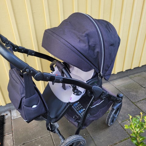 Sittdelen går att vända åt båda hållen så att barnet kan åka antingen framåtvänd eller bakåtvänd. Sittdelen går att fälla väldigt långt ned och taket går nästan helt över barnet i fullt utvecklat läge. Har använts som sovvagn av oss vilket den funkat perfekt för.