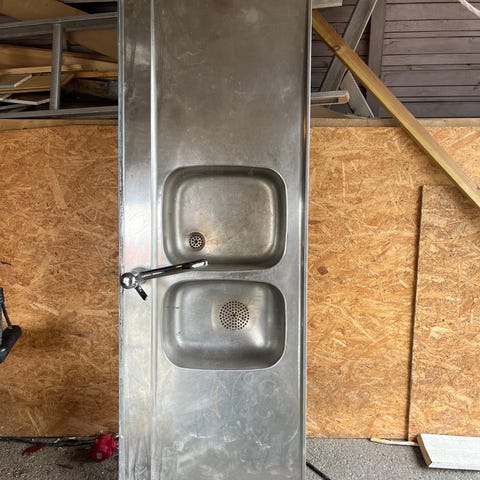 Bänk 1: 220x62 cm, med 3 monteringshål för blandare (200 kr)
