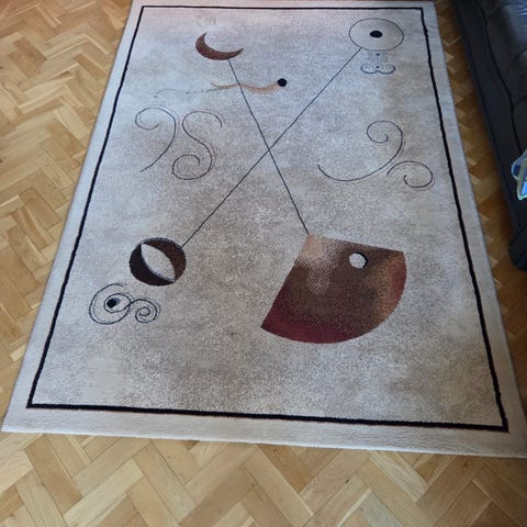 Ikea matta i flerfärgad design med organiskt mönster i bland annat beige, vitt, rosa och mörkare toner. Passar som golvmatta i vardagsrum, sovrum eller hall. 230×160