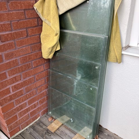 Vi har under ett par år samlat på oss glas till ett växthus. Nu har vi fått andra planer och säljer därför av våra glas.