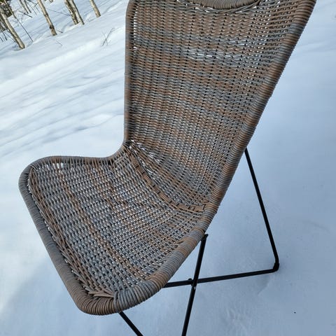 Bekväm loungestol med hopfällbart stativ och med klädsel i stoppat polyestertyg.