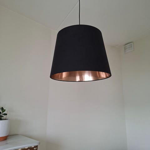 Brun taklampa i trä från franska möbelkedjan Habitat.
