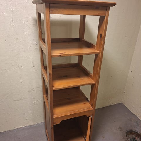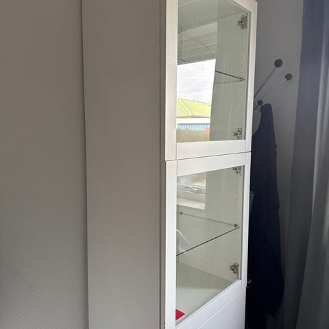 Nätt skåp från Ikea med dörr av glas, "frostad" med plastfilm. 3 hyllor.