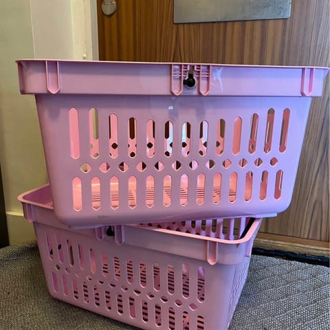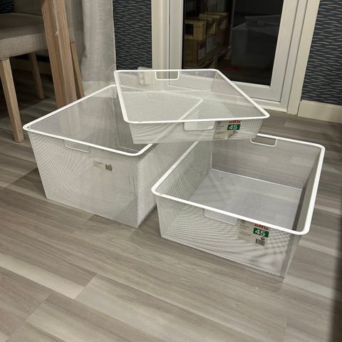 Day vikbara plastlådor i flerpack. Lådorna är tillverkade i plast och har perforerade sidor och botten. Färgerna är ljusgrön, rosa och grå. De kan fällas ihop för enkel förvaring när de inte används. Lämpliga för förvaring i hemmet, till exempel i garderob, skafferi eller barnrum.