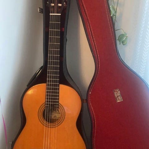 Yamaha CG 40 A i använt men bra skick. Repor på baksidan och lite stött i kanterna. Inget som påverkar funktionen. Se bilder. Gear4music hårt fodral. Använd under en termin. Små märken och repor. 600 kr för båda. Finns på Ingarö. Kan möta upp i Gustavsberg eller Orminge.