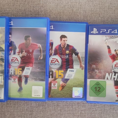 Spelen är PEGI 3-märkta och avsedda för användning på Playstation 4-konsol. Passar för den som vill ha flera årsutgåvor av FIFA-serien samlade till PS4. 100kr/st eller alla för 500kr