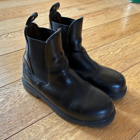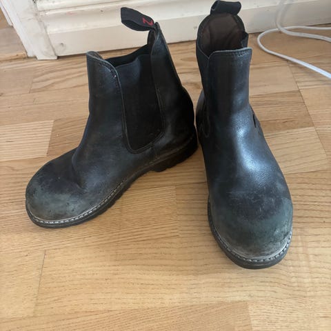 Ridsko modell Jodhpur märke CRW storlek 35. Ridskon har stålhätta. Resårdelen på skon gör att den är lätt att ta av och på.