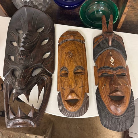Trämask, väggdekoration handmålad flerfärgad