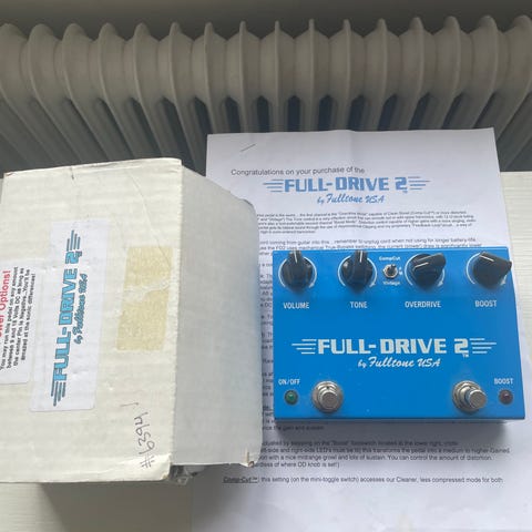 Fulltone Full-Drive 2 MOSFET gitarrpedal - klassiker! Overdrive och boost. Den har reglage för volume, tone, overdrive och boost samt omkopplare för olika clipping-/boost-lägen. Utrustad med in- och utgång för standard 6,3 mm telekablar samt anslutning för 9V nätadapter.