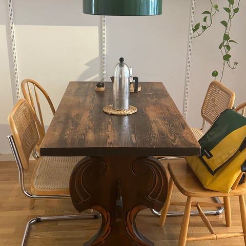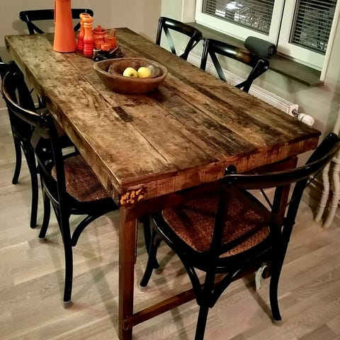 Rustik bord av återvunnen alm, gjord av gamla dörrar, köptes för ca 10 år sedan på Lauritz. Hämtas på plats.