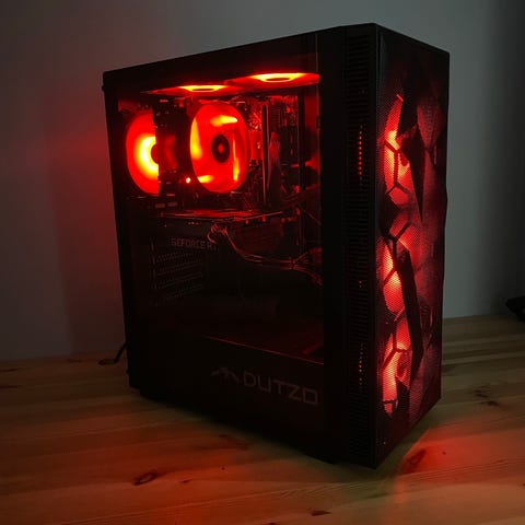 en ny gaming dator som nyligen färdiggjord rensad och redo för försäljning.