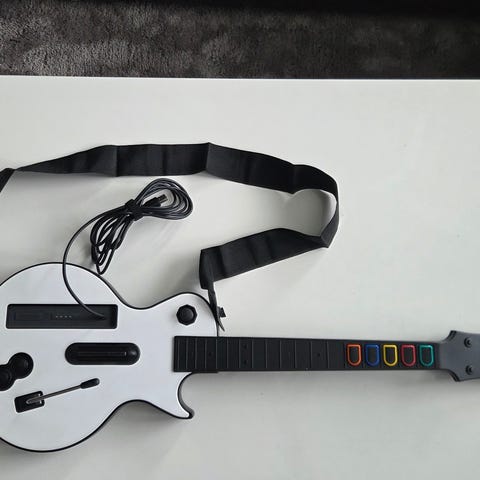 Gitarren är i fint skick, och fungerar med alla Guitar Hero och Rock Band spel till PS3 (förutom Live).