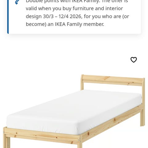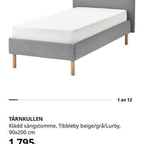 Inkluderar resårmadrass (Snarum, IKEA). Bäddmadrass och madrassskydd kan ingå vid önskemål. Se mått på bild. Sängramen kan placeras åt båda håll. Se nätet för inspiration.