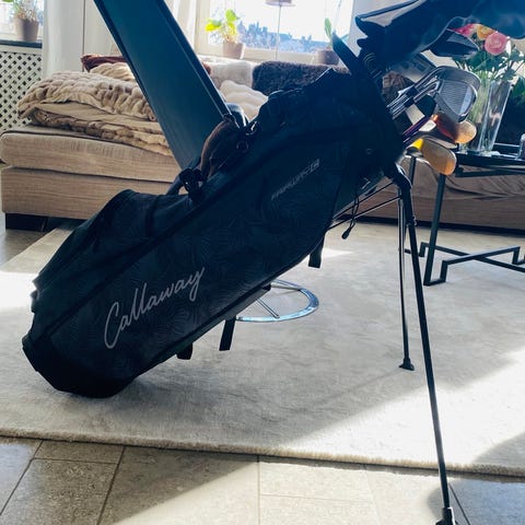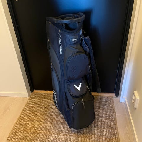 Callaway vagnbag i svart färg. Bagen har 14 fack för klubbor i toppen samt flera ytterfickor med dragkedja för förvaring av tillbehör.