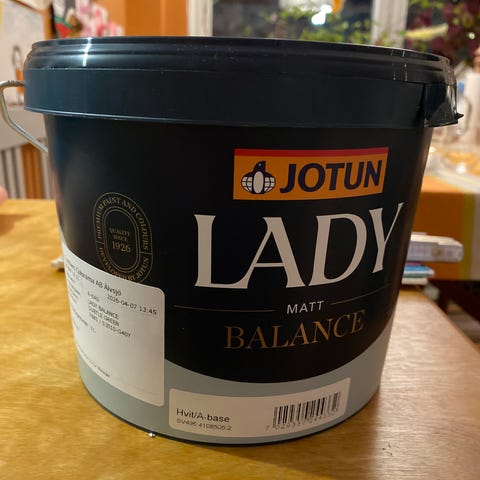 10L burk med jotuns färg pure color kokos (supermatt). Öppnad 2026-04-05 men passade tyvärr inte hos oss. Därav cirka 8L kvar.