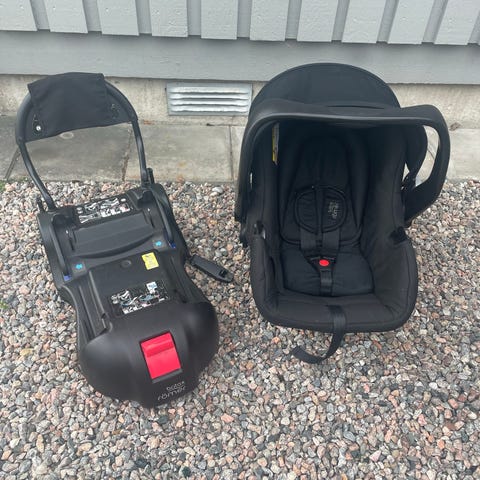 Säljer en bilbarnstol (babyskydd) med tillhörande bas och spädbarnsinlägg från Britax Römer. Bra skick! Pris 300 kr. Finns i Solna.
