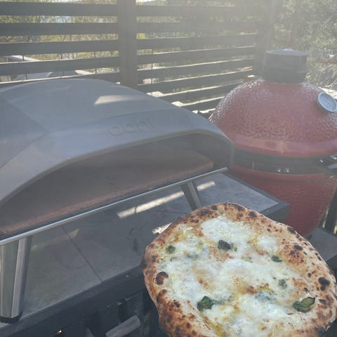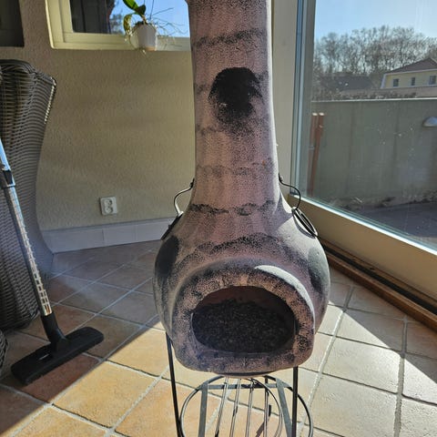 Chimenea uteugn i keramik med stativ grå