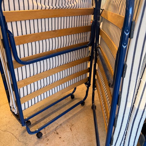 Smidig och praktisk extrasäng 80 cm bred i stabil metallram – perfekt när du får gäster på besök! Sängen är hopfällbar vilket gör den enkel att förvara när den inte används, och den tar minimalt med plats i förråd eller garderob.