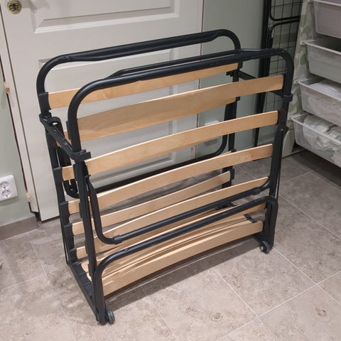 Den robusta konstruktionen med fjädrande botten ger bra stöd och komfort tillsammans med en madrass (medföljer ej). Perfekt som reservsäng i hemmet, sommarstugan eller kontoret.