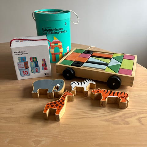 Träleksaker blandat set färgglada