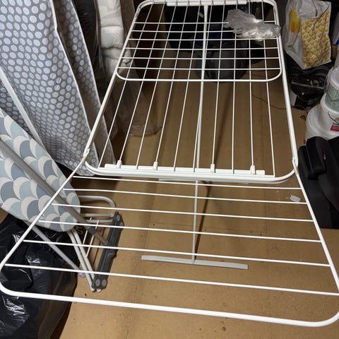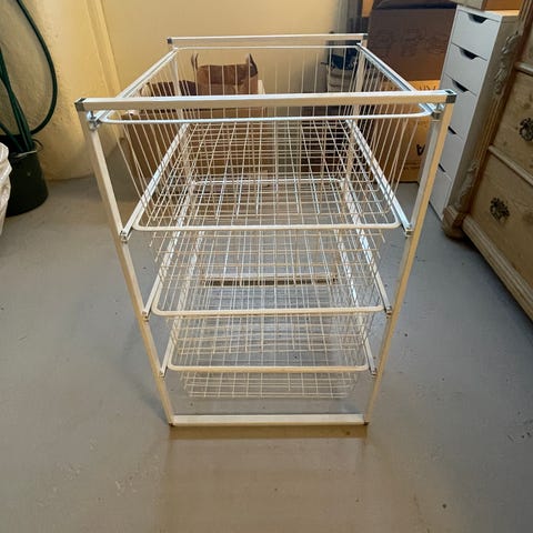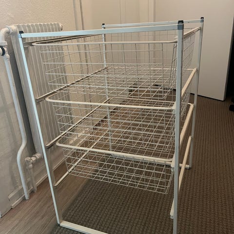 Trådbackar från Jysk, 2 st. Något smalare modell som passar bra även i mindre, platsbyggda garderober. Höjd ca 68,5 cm, bredd 42,5 cm och djup 49 cm.