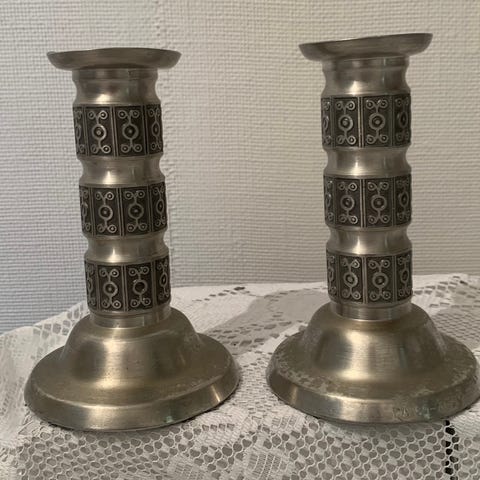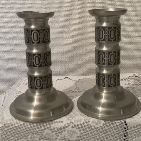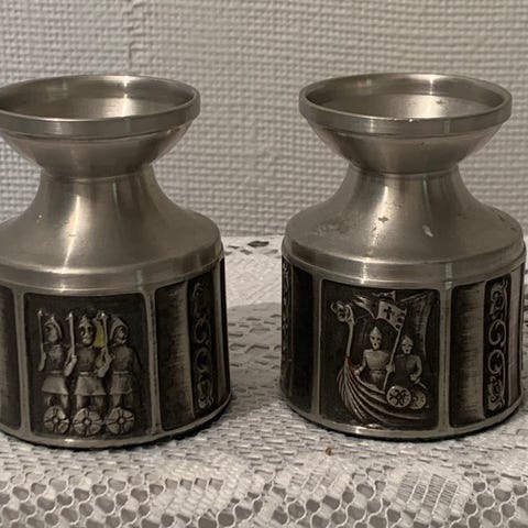 Ett par ljusstakar i norskt tenn. Stilren design och passar i alla miljöer. Höjd 7,5 cm och fint skick.