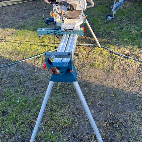 Hopfällbart stativ till kap- och geringssågar.