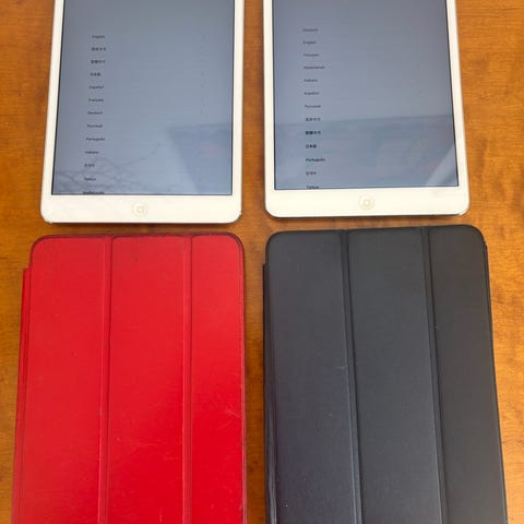 Apple iPad Mini surfplatta i svart färg. Kompakt modell med pekskärm som lämpar sig för vardagsanvändning som webbsurf, video och appar. På bilderna syns även ett grönt skyddsfodral med handtag som kan användas för extra skydd och enklare hantering, till exempel av barn. Exakta tekniska specifikationer som lagringskapacitet och anslutningar framgår inte av uppgifterna och kan kontrolleras i enhetens inställningar. 12Gb gammal modell, kan ej ladda ner appar tyvärr med surfa manuellt går bra