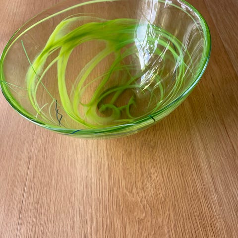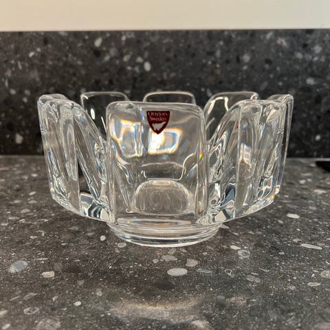 Kosta Boda skål i blått glas. Skålen har räfflad utsida och rund form. Passar exempelvis som serveringsskål eller som dekorationsföremål i hemmet.