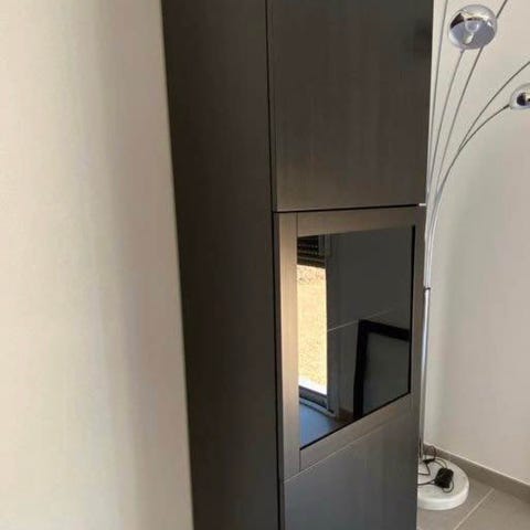 Svärtat trä med dörr i glas. 2 moduler, vardera är längd 60, bredd 42, höjd 60 cm