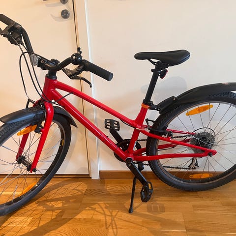 Allt fungerar bra. Normalt slitage och repor efter användning. Lite sliten på sadeln.