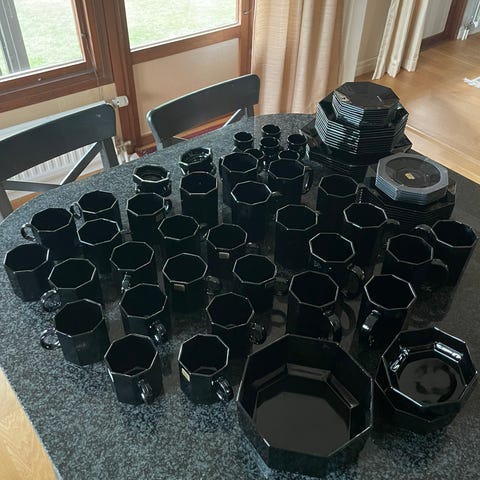 Vintage muggar/koppar från Arcoroc. 6 stycken. Använda. Svarta.