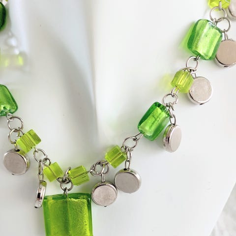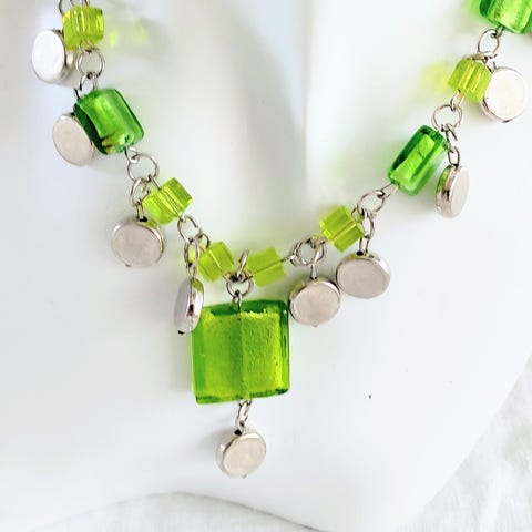 Vår likt glas halsband i grönt och silver