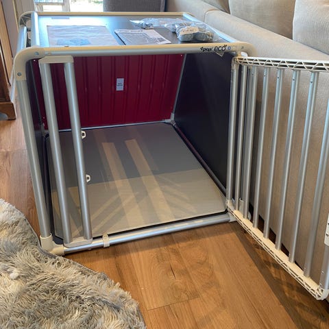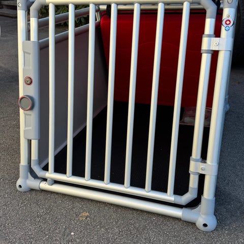 4pets ProLine hundbur i aluminium för transport av hund i bil. Burens sidor och bakstycke är täckta med skivor medan framstycket har galler för god ventilation. Utrustad med dörr fram, halkskyddad botten och stabil ramkonstruktion. TÜV SÜD-certifiering enligt märkning på insidan. Lämplig för säker transport av hund i bagageutrymme eller lastutrymme i bil, anpassad för en hund beroende på storlek och bilmodell.