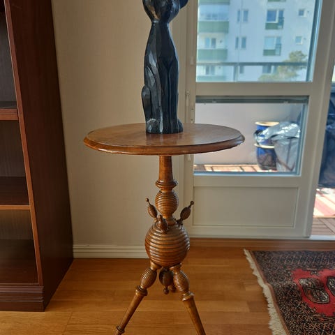 Antik piedestal / pelarbord i mässing & sten – ca 70 cm
