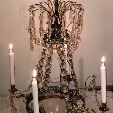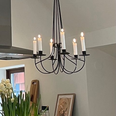 Säljer en vacker och tidlös ljuskrona. Perfekt för sena middagar över matbordet eller som stämningshöjare i uterummet/växthuset.