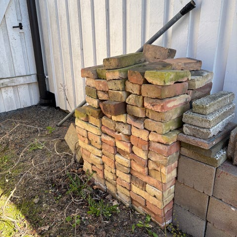 Benders takpannor i tegelröd färg. Klassisk profil med vågformad design, lämplig för yttertak på bostadshus, garage eller andra byggnader. Tillverkade i betong/tegel-look och staplade för förvaring utomhus. Passar för tak med bärläkt anpassad för denna typ av takpanna. Antal pannor och exakta mått behöver kontrolleras vid intresse.