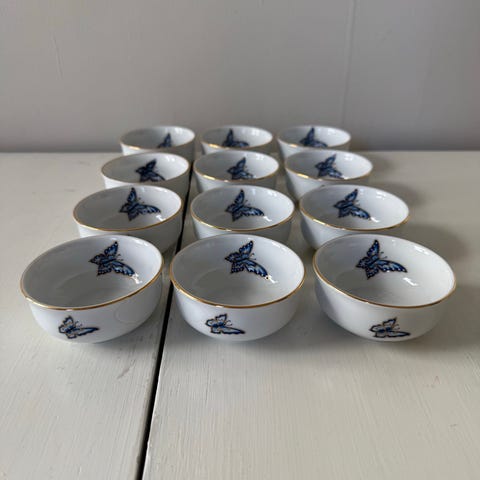 Eleganta ljusstakar från Fyrklövern i modellen Pilgrim med klassiskt blått fjärilsmotiv och gulddetaljer.