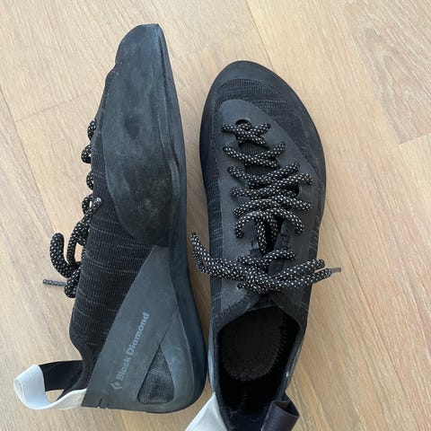 Red Chili Circuit klätterskor i storlek EU 39 (UK 6, US 7). Skorna har två kardborreband för enkel justering och av- och påtagning. Ovandelen är i blått och svart material med förstärkt tåparti och gummisula anpassad för klättring. Passar för inomhus- och utomhusklättring beroende på behov och nivå.